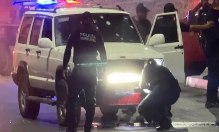 Durante los últimos minutos de ayer martes, una camioneta Jeep blanca fue atacada a balazos en la entrada del municipio de Izúcar de Matamoros. El vehículo presenta al menos diez impactos de arma de fuego en el parabrisas del lado del conductor.