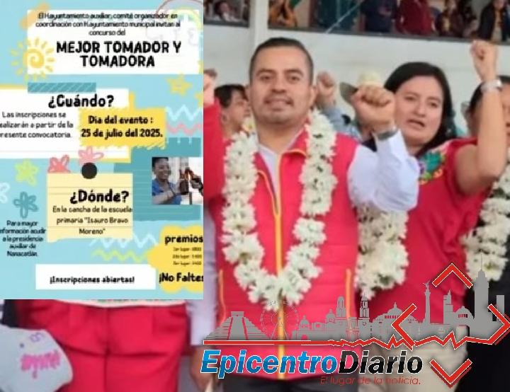 El evento, titulado “Mejor tomador y tomadora”, fue promovido por el comité organizador de la feria local, con respaldo del gobierno auxiliar y del presidente municipal Salvador Tino, del Partido del Trabajo. Se tiene previsto para el próximo 25 de julio en la cancha de la escuela primaria Isauro Bravo Moreno, ubicada en la comunidad de Nanacatlán.