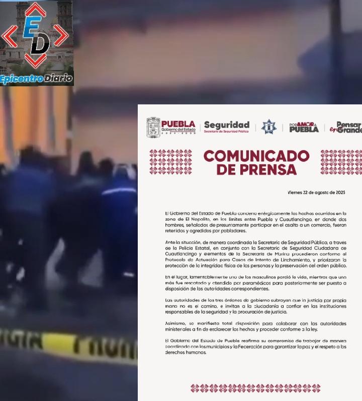Gobierno de Puebla condena linchamiento de presunto asaltante en Cuautlancingo
