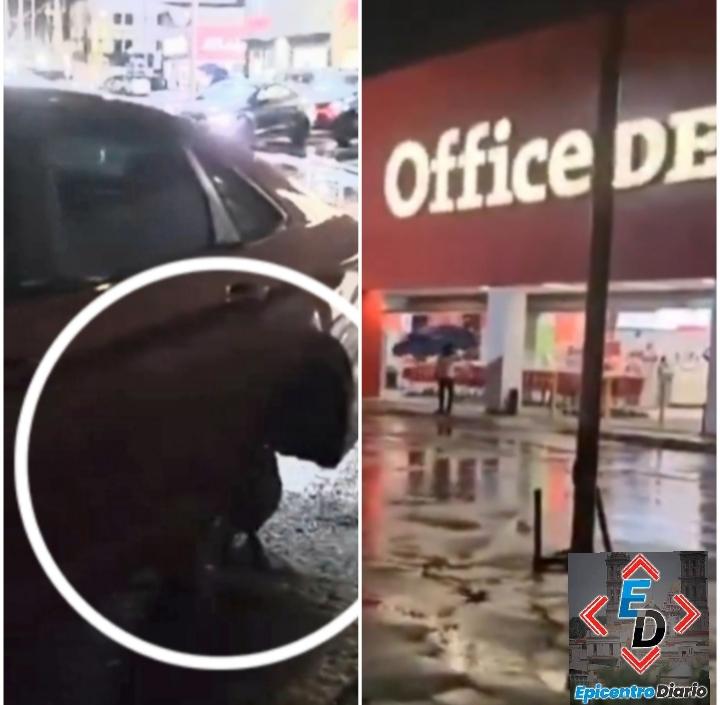 Una mujer fue víctima de la delincuencia en el estacionamiento de una tienda Office Depot, ubicada sobre el Circuito Juan Pablo II, luego de que sujetos desconocidos le robaran una de las llantas de su vehículo la noche de ayer sábado.