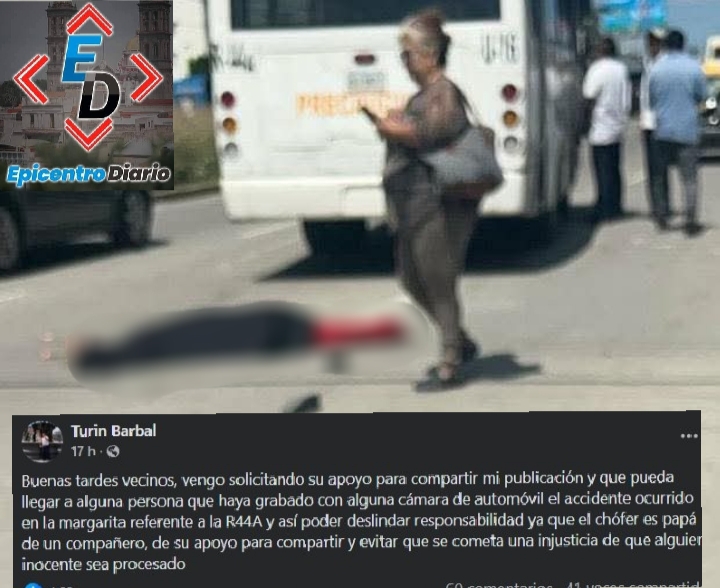 El usuario identificado como Turin Barbal difundió una publicación en Facebook solicitando que, en caso de que alguien cuente con videos del percance, se compartan para esclarecer lo sucedido y evitar que el conductor sea señalado de manera injusta.