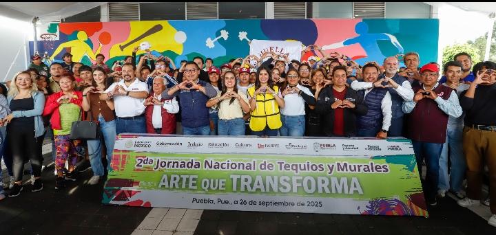 En la capital poblana se llevó a cabo una jornada artística en la que estudiantes y vecinos pintaron un mural en la entrada de la Unidad Deportiva Mario Vázquez Raña, como parte de la iniciativa nacional “Arte que Transforma”, orientada a recuperar espacios públicos y prevenir adicciones entre la juventud.