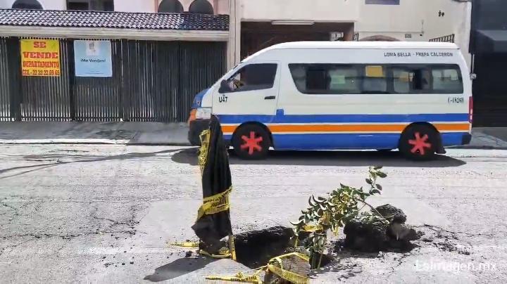 Conductores de Puebla deben extremar precauciones en la calle 16 de Septiembre, entre la 35 y 37 Poniente, en la colonia Huexotitla, luego de que se registrara un nuevo socavón en esa zona.