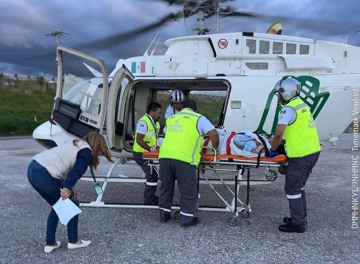 El traslado se realizó desde el Hospital Integral de San Martín Texmelucan hacia el Hospital de la Mujer en la ciudad de Puebla, con el apoyo de dos aeromédicos que brindaron atención durante todo el vuelo.