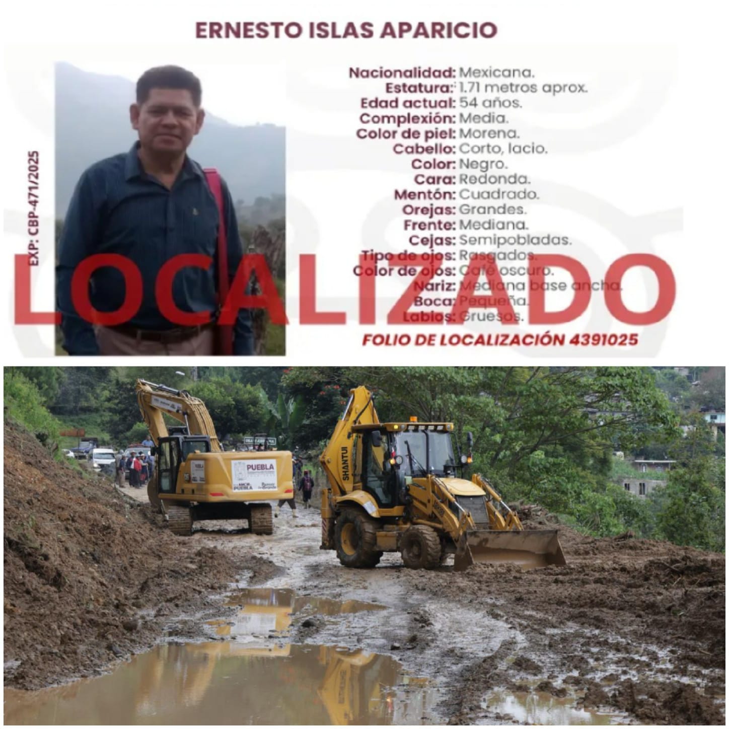 Cabe recordar que el pasado 21 de octubre, la Secretaría de Gobernación (Segob) dio a conocer la ubicación de Sergio Franco Juárez, vecino de Papatlazolco, Huauchinango, quien también había sido reportado como desaparecido.