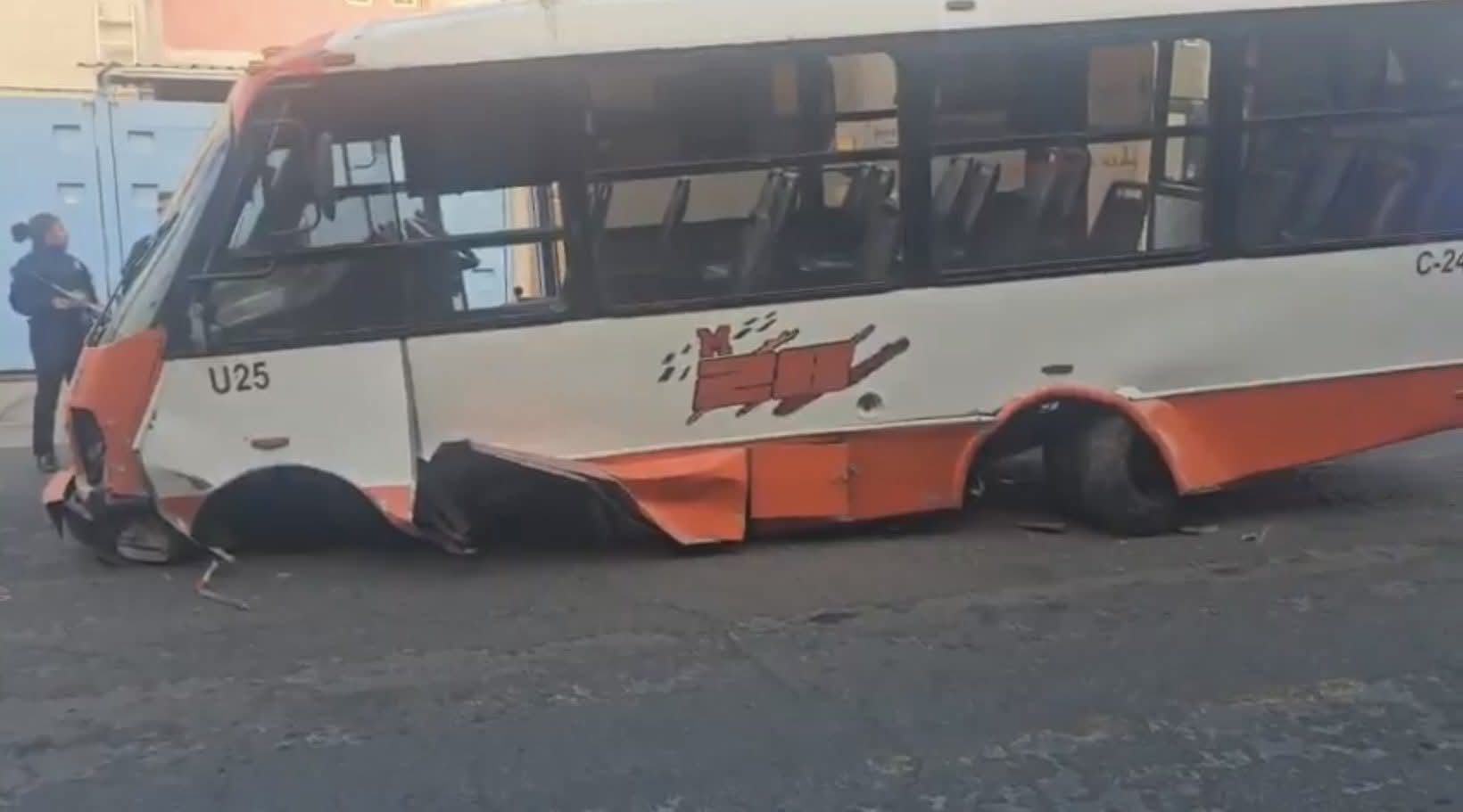 Una unidad del transporte público perteneciente a la ruta M28 fue localizada severamente dañada sobre Camino a Morillotla, en las inmediaciones de Camino Real a Cholula, luego de que el conductor presuntamente perdiera el control y abandonara el vehículo.