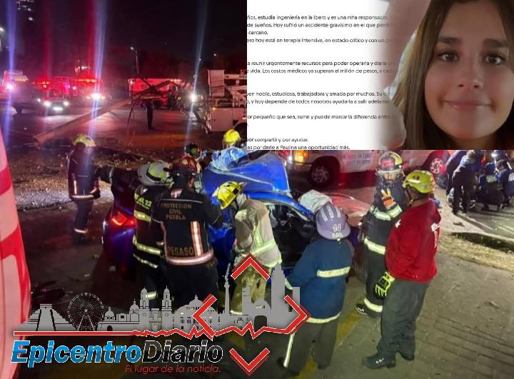 Amigos y familiares de Paulina, la joven de 21 años que logró sobrevivir al violento accidente registrado la madrugada del sábado en la Vía Atlixcáyotl, iniciaron una campaña de recaudación en la plataforma GoFundMe para cubrir los elevados costos de su atención médica.