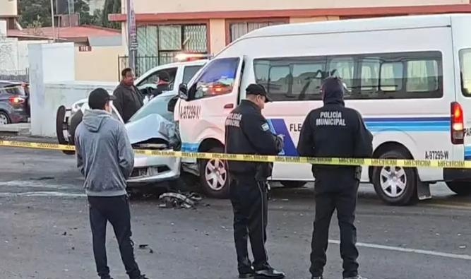 Un hombre de aproximadamente 50 años perdió la vida este domingo por la mañana luego de un fuerte choque entre un vehículo compacto y una unidad de transporte público en la zona de Asta Bandera, en la capital de Tlaxcala.