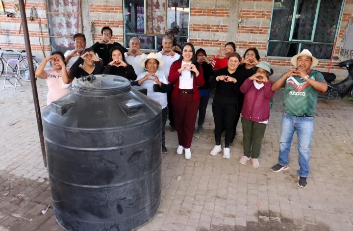 En esta ocasión, la presidenta municipal acompañó al equipo de la Secretaría de Bienestar durante la entrega e instalación de depósitos para el almacenamiento de agua en la junta auxiliar de San Cristóbal Tepontla.
