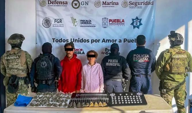 Los detenidos fueron identificados como María de Jesús N., de 50 años, y Vicente N., de 47, a quienes se les decomisaron más de 90 dosis de presunta marihuana y cristal, además de alrededor de 50 objetos utilizados para el consumo de drogas.
