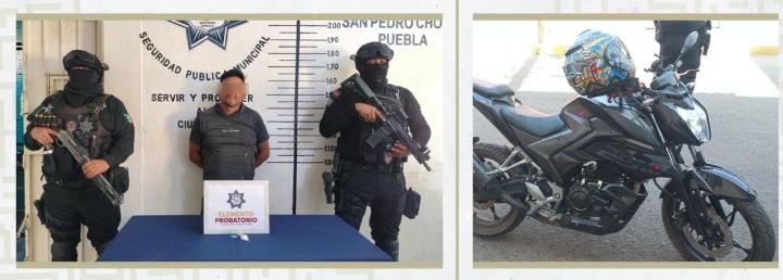 Derivado de los recorridos de vigilancia preventiva y estratégica, elementos de la Secretaría de Seguridad Ciudadana de San Pedro Cholula (SSC Cholula) aseguraron a un masculino por su probable participación en delitos contra la salud, así como por la posesión de una motocicleta con predenuncia de robo, en la Junta Auxiliar de Santiago Momoxpan.