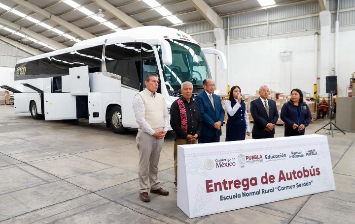 En cumplimiento a los acuerdos que se han tomado a lo largo de 18 mesas de diálogo que el Gobierno del Estado de Puebla ha sostenido con las estudiantes de la Normal Rural “Carmen Serdán”, los secretarios de Gobernación y de Educación Pública, Samuel Aguilar Pala y Manuel Viveros Narciso, respectivamente, hicieron entrega del autobús gestionado ante la autoridad federal, tras 16 años de haber hecho la solicitud, que hasta esta administración se realizó.