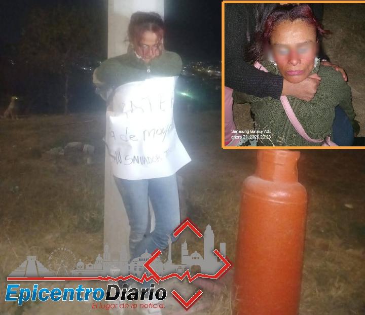De acuerdo con testimonios de vecinos, la mujer —quien aparenta tener entre 30 y 40 años— fue sorprendida cuando intentaba huir con un tanque de gas que presuntamente no le pertenecía. Tras ser interceptada, fue golpeada y llevada a un predio ubicado en la calle Primero de Mayo, donde fue atada a un poste de alumbrado público y exhibida con un mensaje que la señalaba como responsable de actos delictivos.