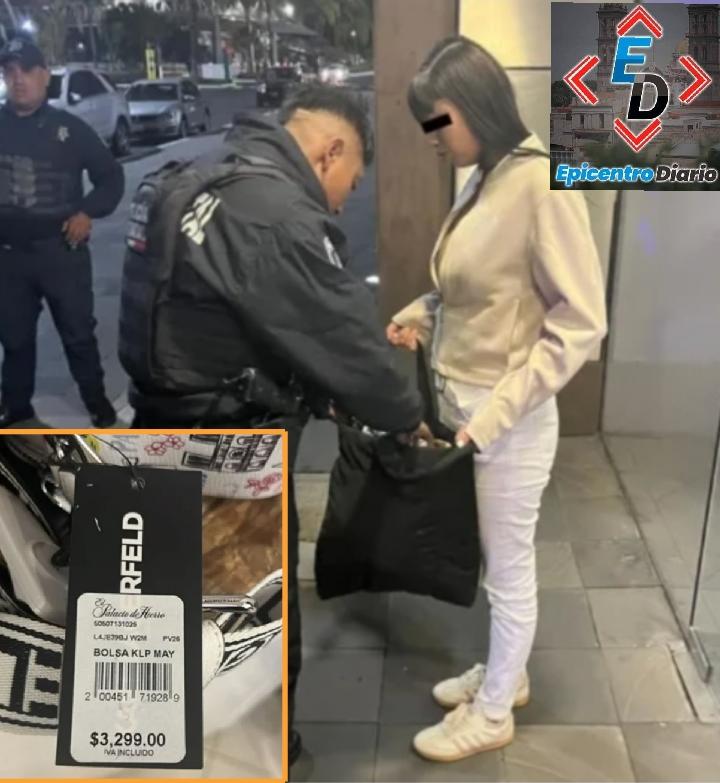 De acuerdo con información oficial, los hechos ocurrieron en la sucursal de Palacio de Hierro, donde la joven, identificada como Joselin M. C., habría intentado salir del establecimiento sin cubrir el pago de varios productos. La situación fue detectada cuando los sistemas de seguridad del lugar se activaron al momento de su salida.