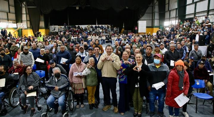 Alejandro Armenta hace entrega de tarjetas de Bienestar a abuelitos poblanos