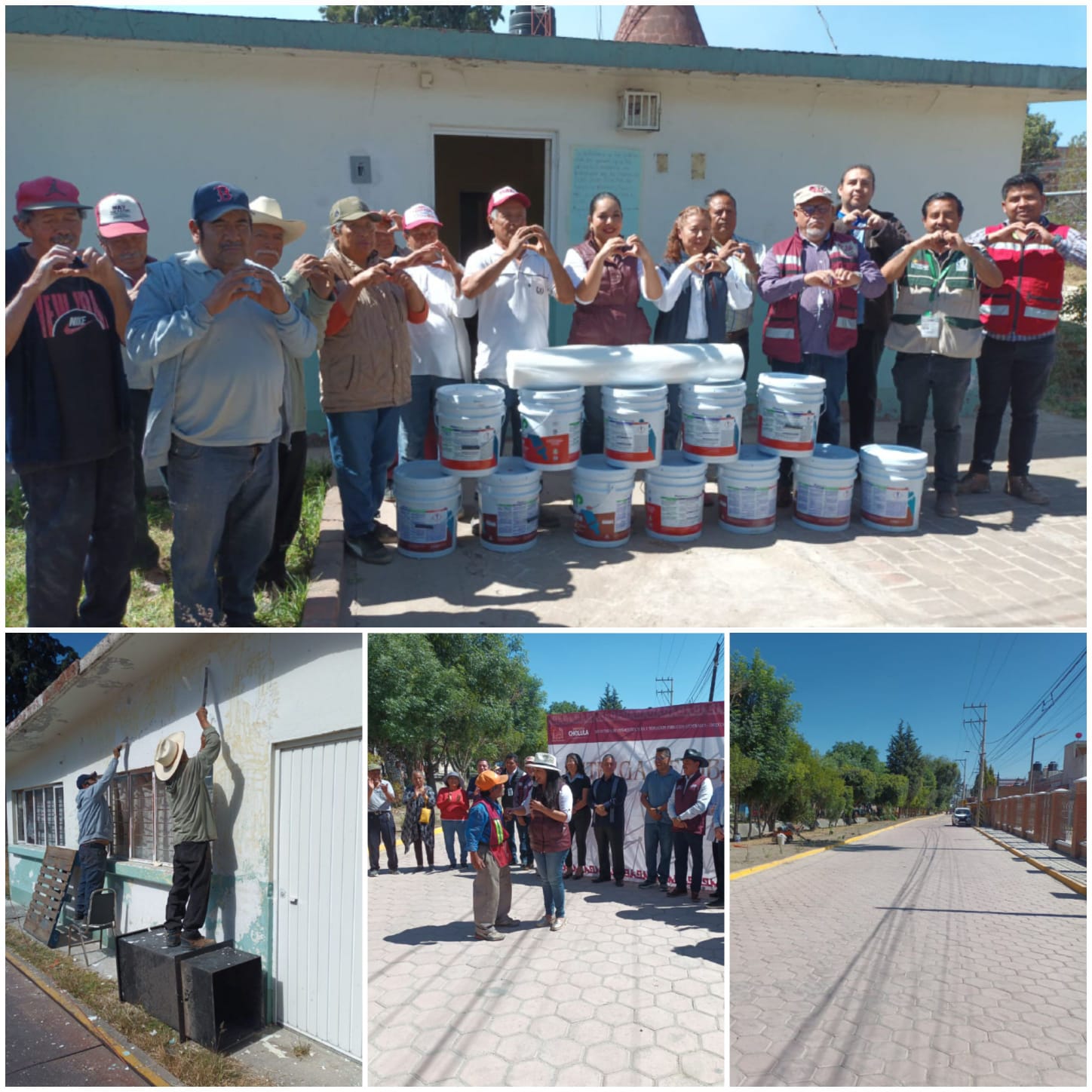 Durante la visita, la presidenta municipal entregó pintura, impermeabilizante y materiales de construcción para realizar una faena integral de rehabilitación, en la que participan personal de la Secretaría de Infraestructura y ejidatarios de la zona, quienes reiteraron su disposición de trabajar de manera coordinada con el gobierno municipal.