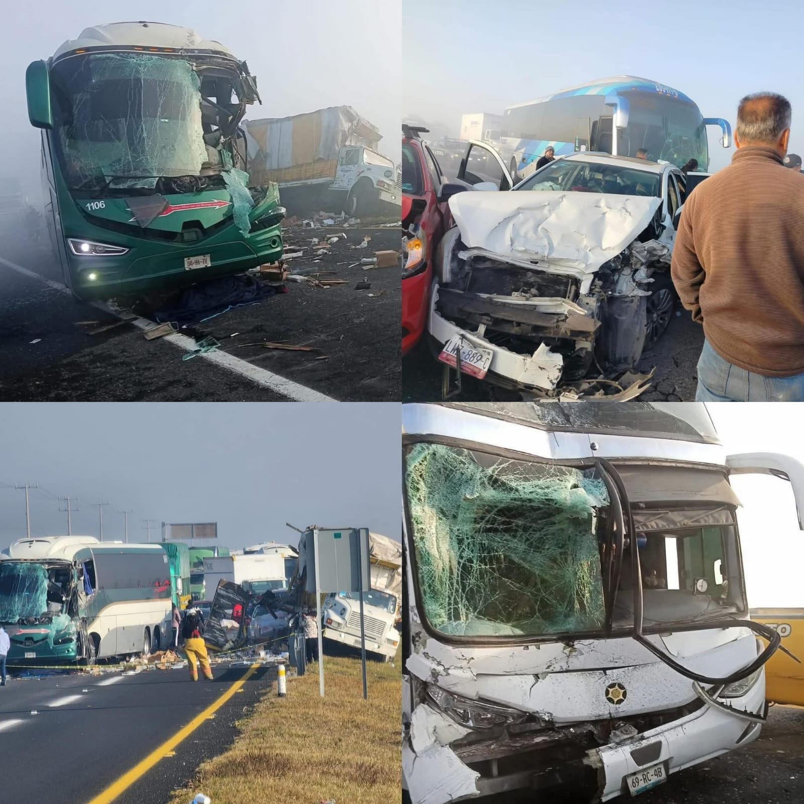 El percance involucró 31 vehículos, entre unidades del transporte público de pasajeros como autobuses de las empresas Flecha Roja y Pegasso, un tractocamión de carga y varios automóviles particulares. La falta de visibilidad habría impedido a los conductores reaccionar oportunamente, lo que derivó en la colisión masiva.