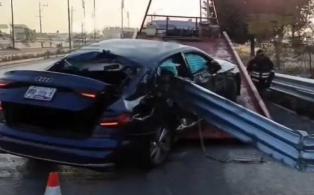 Conductor se salva de milagro tras incrustar su vehículo en barra de contención del Periférico Ecológico