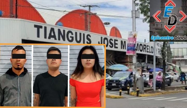La Secretaría de Seguridad Pública informó sobre la detención de tres personas presuntamente vinculadas con actividades de extorsión y venta de droga en inmediaciones del Mercado Morelos, uno de los principales centros de abasto de la capital poblana.