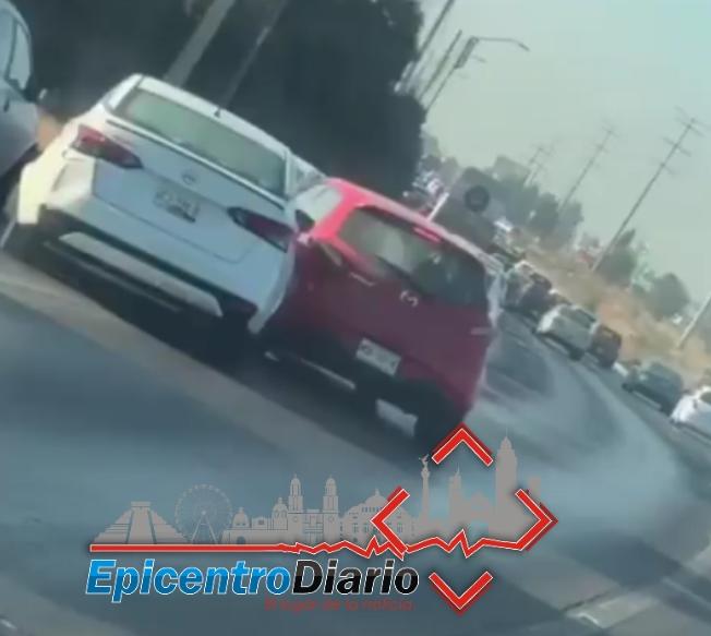 De acuerdo con los primeros reportes, el percance ocurrió antes de la desviación hacia la calle Morelos, cuando un Mazda de color rojo trató de incorporarse al carril de alta velocidad, maniobra que provocó que golpeara a un Nissan blanco que circulaba por la zona.